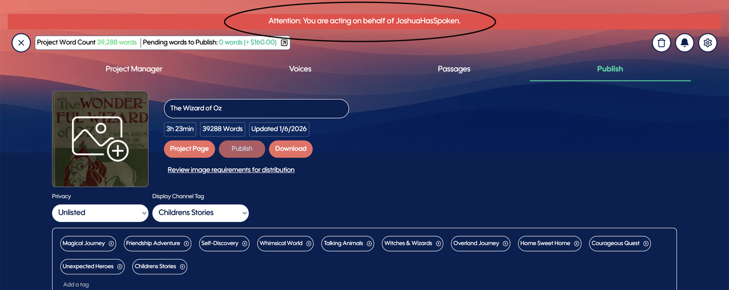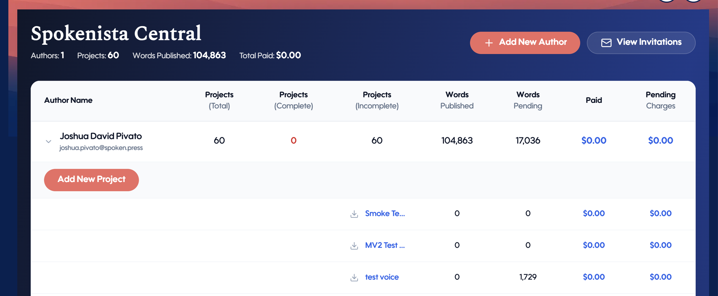 Manage multiple authors and titles while utilizing Spoken Studio to cast voices, edit, and narrate professional audiobooks in a streamlined workflow. All on Spoken.